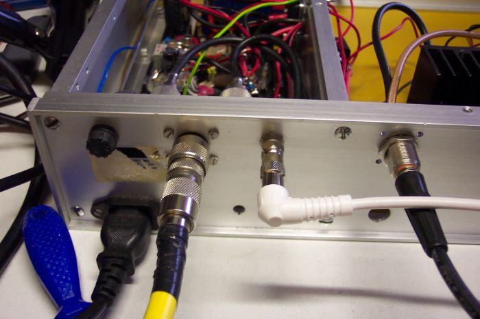 Ik ben al een tijdje bezig de voeding, een coaxrelais, de eindtrap en een relaisvertraging in te bouwen in een 19 inch kast die ik nog had staan. Dus dat was even druk boren, zagen, veilen, etc.