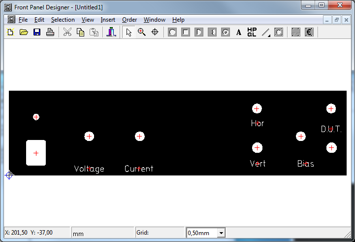 Ik heb een frontje getekend voor mijn componenten tester. Toen gelamineerd en op maat gesneden. Gaten in gestansd en toen onder de moeren van de schakelaars en potmeters gezet. Zit goed vast en geen lijm gebruikt. Ziet er een stuk beter uit dan die stift :-)