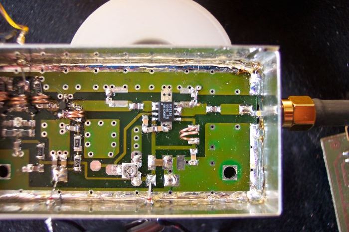 Deze versterker is opgebouwd rond de ERA5 MMIC en de RF2126 (final).