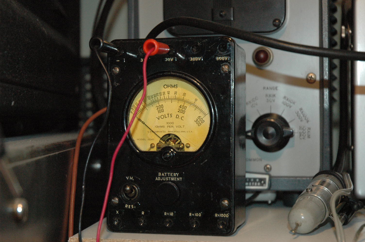 Ik gebruik deze meter eigenlijk niet veel. Het is meer een verzamelstuk maar hij is handig bij diodes en doorgangs metingen als mijn fluke bezet is en situaties waarbij je alleen snel wil weten of er ergens ongeveer spanning is of als je iets moet pieken. Dat zie je analoog toch makkelijker en deze is net als een digitale toch hoogohmig. Ik heb daarvoor ook diverse buisvoltmeters maar die moet je dan wel een half uur van te voren aanzetten.