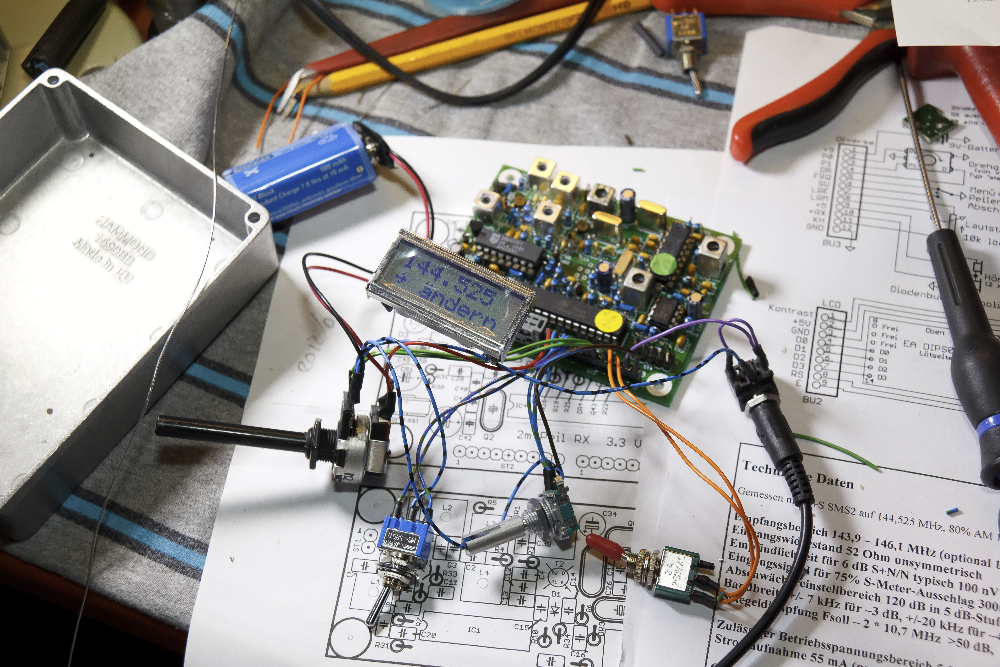 Later moet ik nog het kastje klaarmaken, een plan maken om de 9V batterij te vervangen voor iets beters (Lithium ion accu bijvoorbeeld) en moet ik een antenne maken. Dat zal wel een soort van HB9CV worden denk ik. Wordt vervolgd...