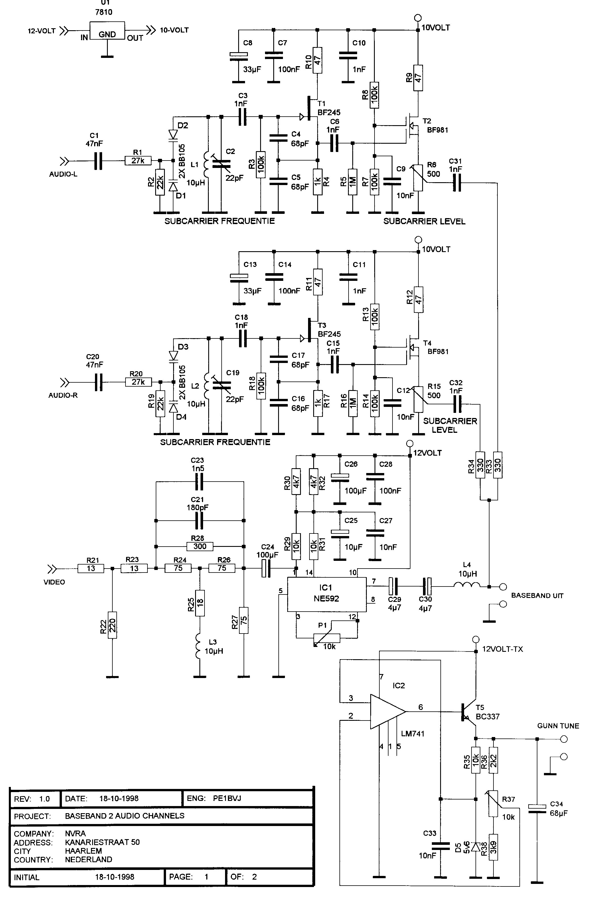 nu had ik nog een basisband module liggen ( alleen video gedeelte) volgens schema hieronder en deze probeer ik in te koppelen op de lnb.
