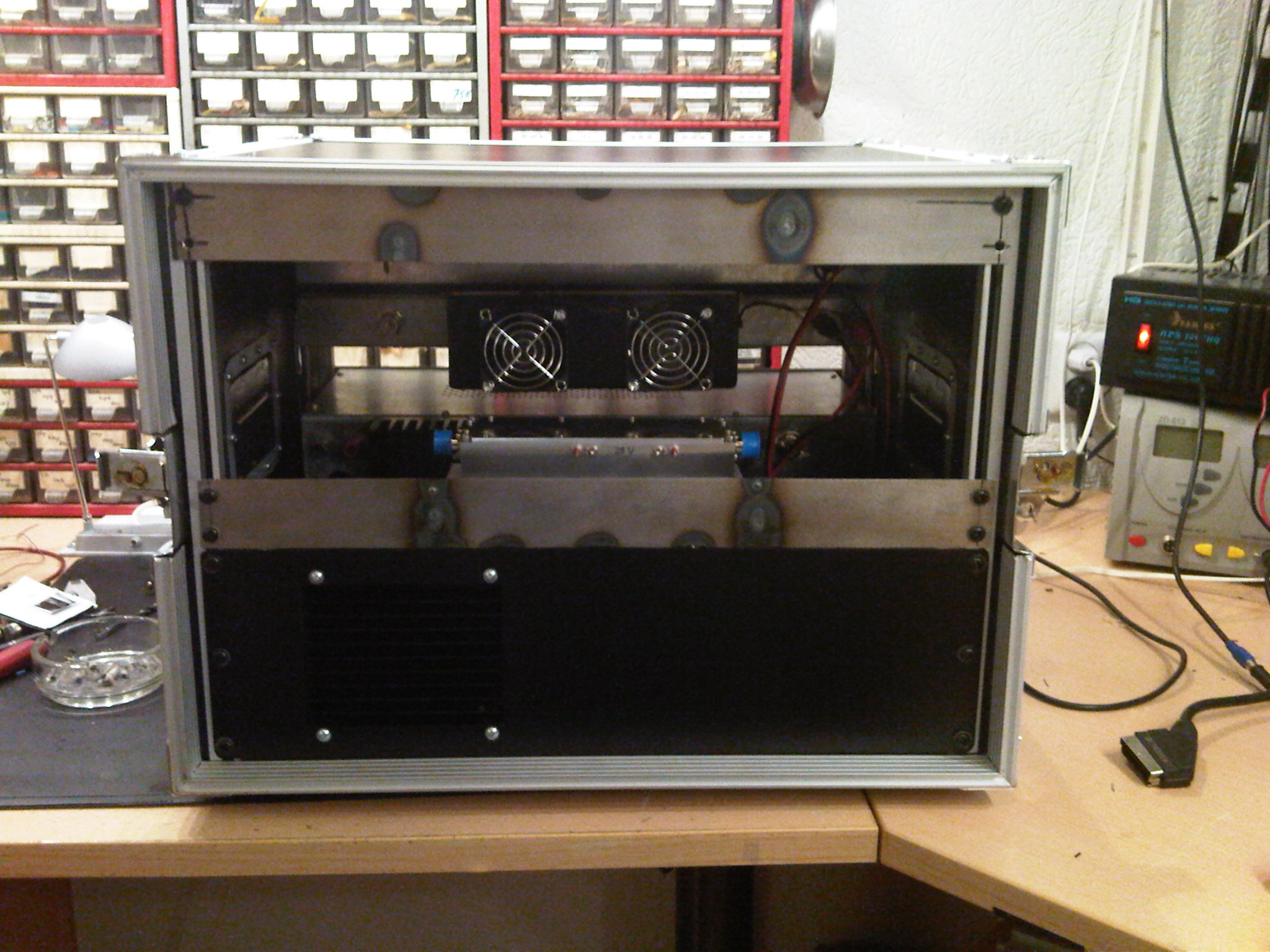 Daarboven een rekje gemaakt met daarop de eindtrap voor 13cm van 100W (PE1RKI).