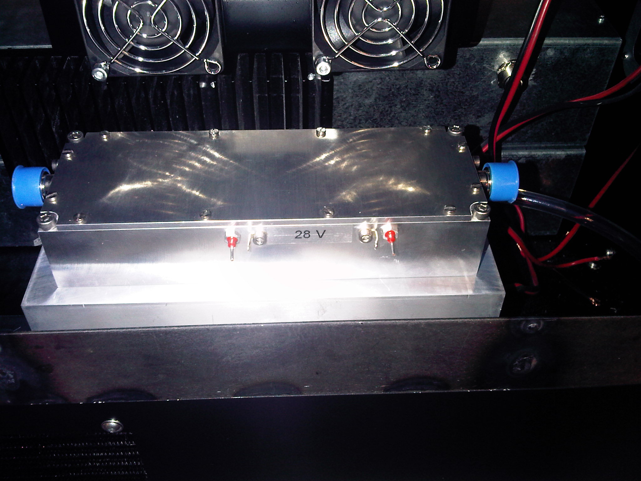 Onderin de kast is de water koeling aangebracht voor de eindtrap 13cm.