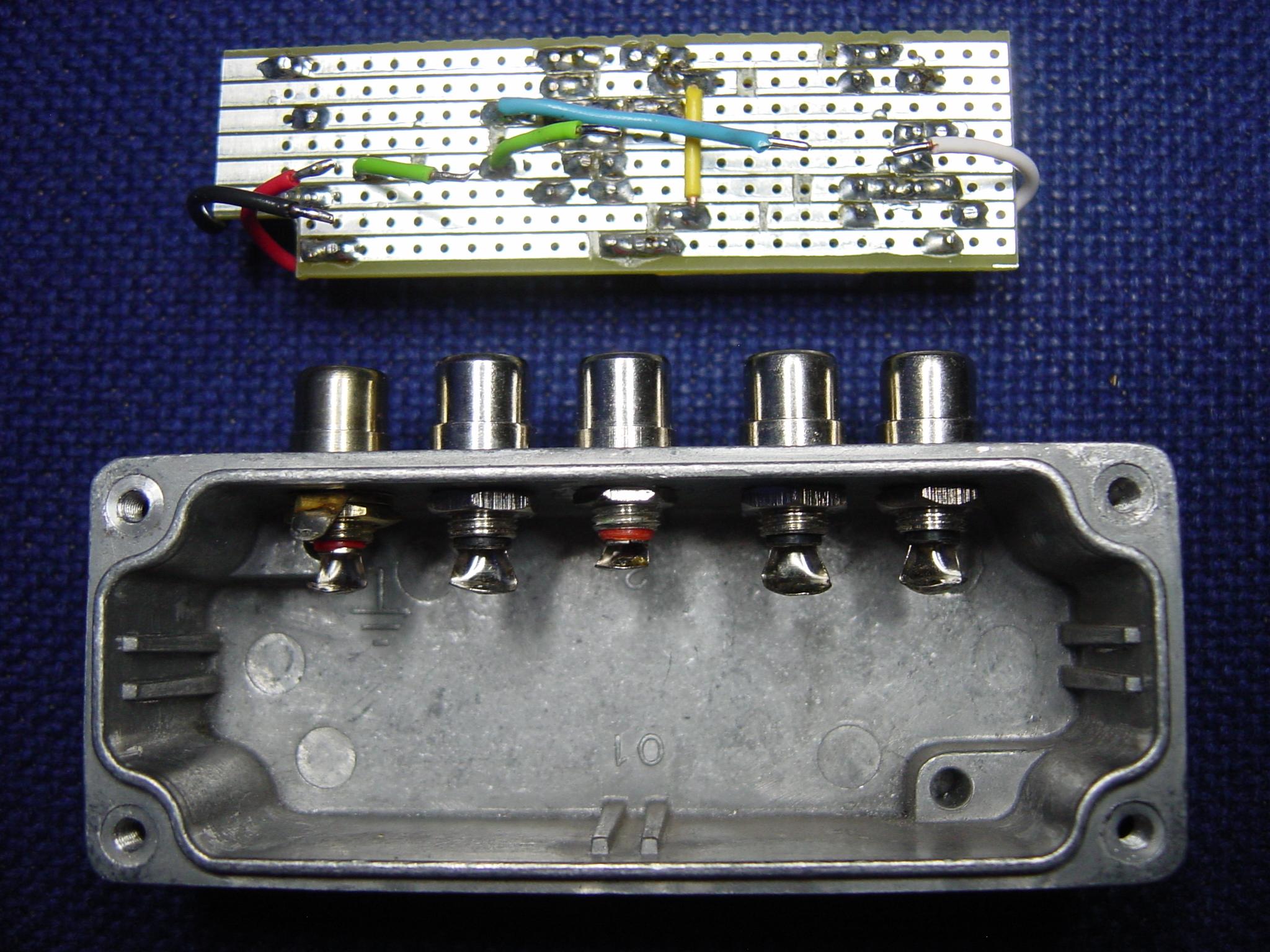 Als bijlage tref je zowel het schema aan en ook de gaatjesprint layout zoals door mij gebouwd. Het geheel zit in een aluminium G102 kastje van 90x35x30mm en heeft buitenwaarts 5 tulp aansluitingen omdat de meeste transceivers namelijk cinch pluggen gebruiken voor de RX-Antenne en de linear. Het geheel behoeft geen ingreep in de set want deze voorziening zit niet geintegreerd in de set maar word er gewoon "tussen" gehangen. Voor de kosten hoef je het niet te laten want die bedragen totaal 20,85 Euro en valt in het niet bij de reparatiekosten van een Front-End.