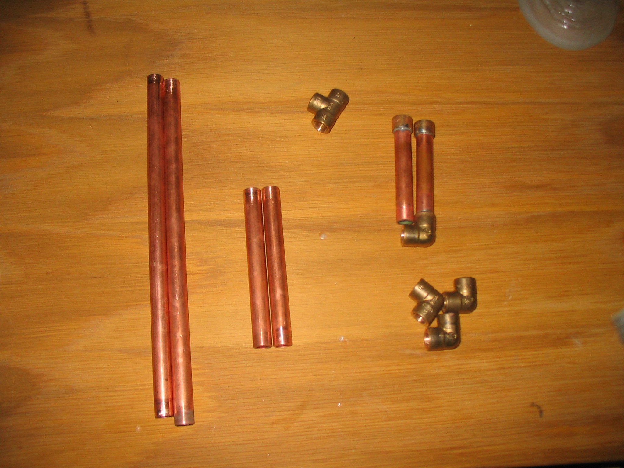 Ik ben begonnen met de 12mm koperen pijp in stukjes te snijden en alles in elkaar gepast