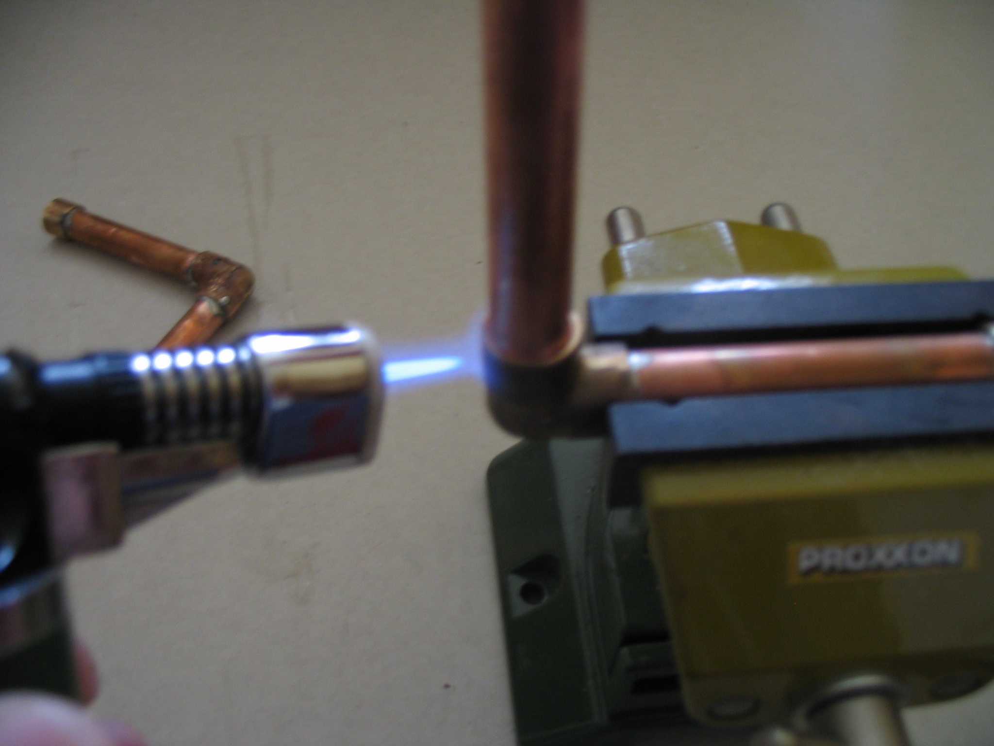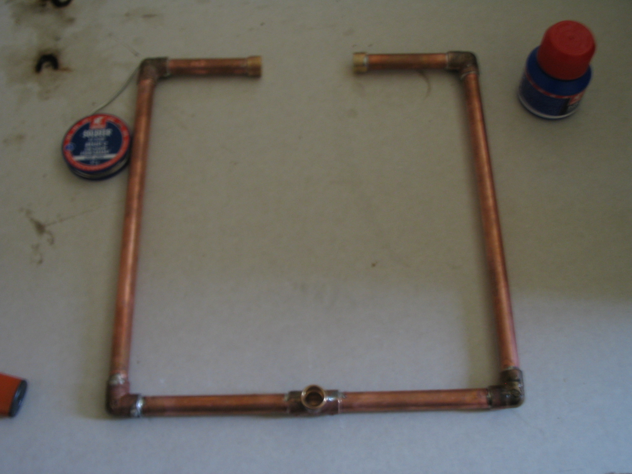 zodat alles gelijk uitkwam en jawel had alles in een keer goed afgesneden met de pijpensnijder na alles gepast te hebben ben ik de boel in elkaar gaan solderen zie foto's: