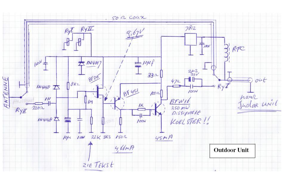 Als je kijk naar de indoor gedeelte dan komt daar het gedeelte van de outdoor wel degelijk op een ingang te staan er staat dus op de uit en ingang een RFC,die de hoogohmige aanpast naar de wenselijke impedantie,deze geld namelijk ook voor ontstoring,wat jij zeg QRM (man made noise),ik heb het ontwerp die ANG voor zn RX320 toepast nog even doorgelicht met een amateur.
