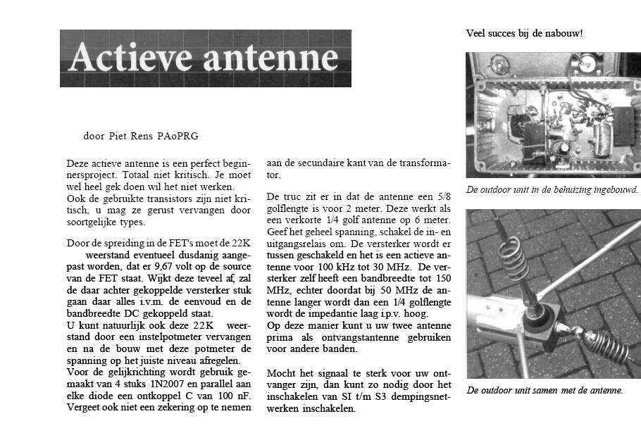 Dit is het ontwerp,van Piet PA0PRG,van de actieve antenne compleet met schema