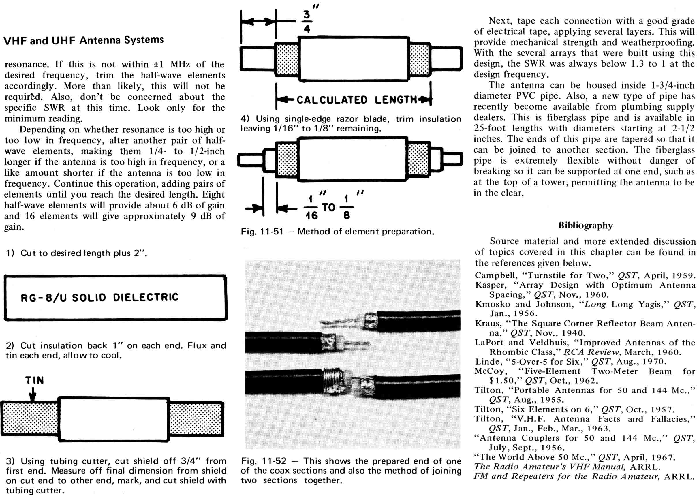 Al in 1995 heb ik es met meerderen een bouwproject gevolgd, welke m.b.v. stukjes oud coax ( RG-58 ) een zeer goede vertikale MONOBAND-rondstraler kan creeren. Deze kan dan b.v. in een fiberglas buis welke als basis antenne dienst kan gaan doen. De antenne zou een gain moeten geven van +5 dBd (ofwel +7 dBi volgens proffesionele fabrieksnormen). Maar als de lengte uitgebreidt wordt kunnen gains "om van te smullen" gerealiseerd worden. :D