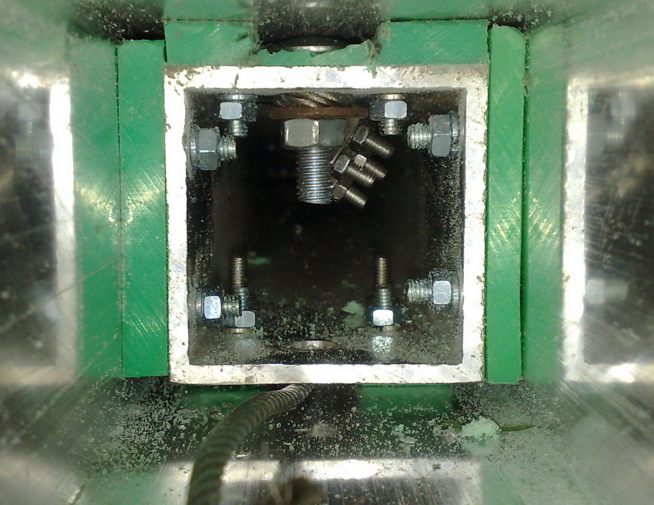 Ik heb in koker 1 vier draadeinden door de hele koker heen gedaan, daar heb je mooi wat stevigheid van. Ik heb m6 draadeinden gebruikt die precies dun genoeg zijn om langs koker 2 te gaan binnenin.