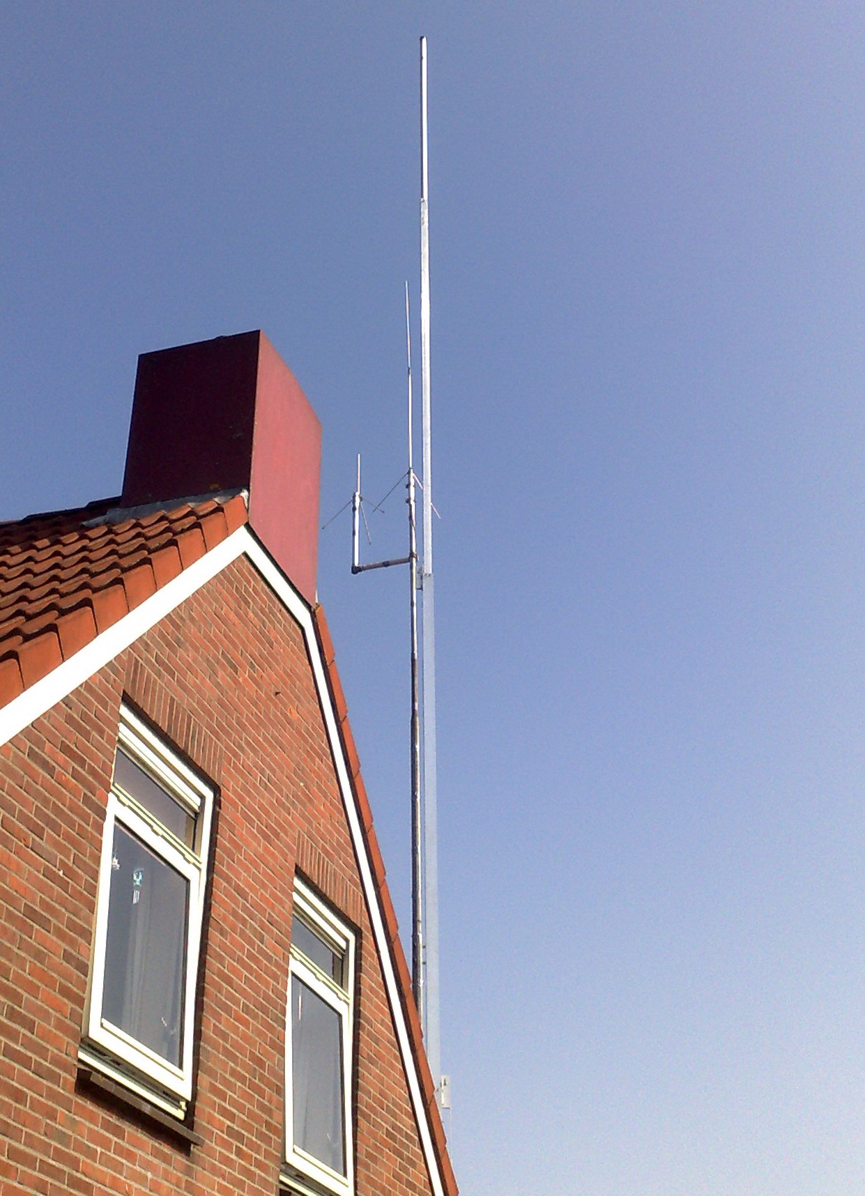 Een erg mooi resultaat Michel! Hij pronkt mooi boven het dak uit. En inderdaad zijn een paar tuidraden geen verkeerde keuze. Aluminium is toch wat minder sterk dan staal tenslotte...