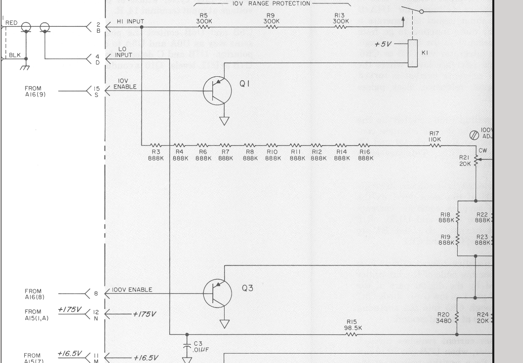Nu staat er dus spanning op de feedback lijn op board A12 (Q7ab) maar het wazige is dat ik tussen massa en cr5/6 bijna nul volt meet en dat kan eigenlijk niet. Aan de andere kant van die lijn op board A12 staat namelijk -5 op de gate van Q7. Dan begin ik idd te twijfelen aan Q10 op A12 maar nog eerder dat er iets mis gaat op A16 ( dat verbindt alle boards met elkaar en er zou een gelijke spanning moeten staan op beide kanten van de feedback.)
