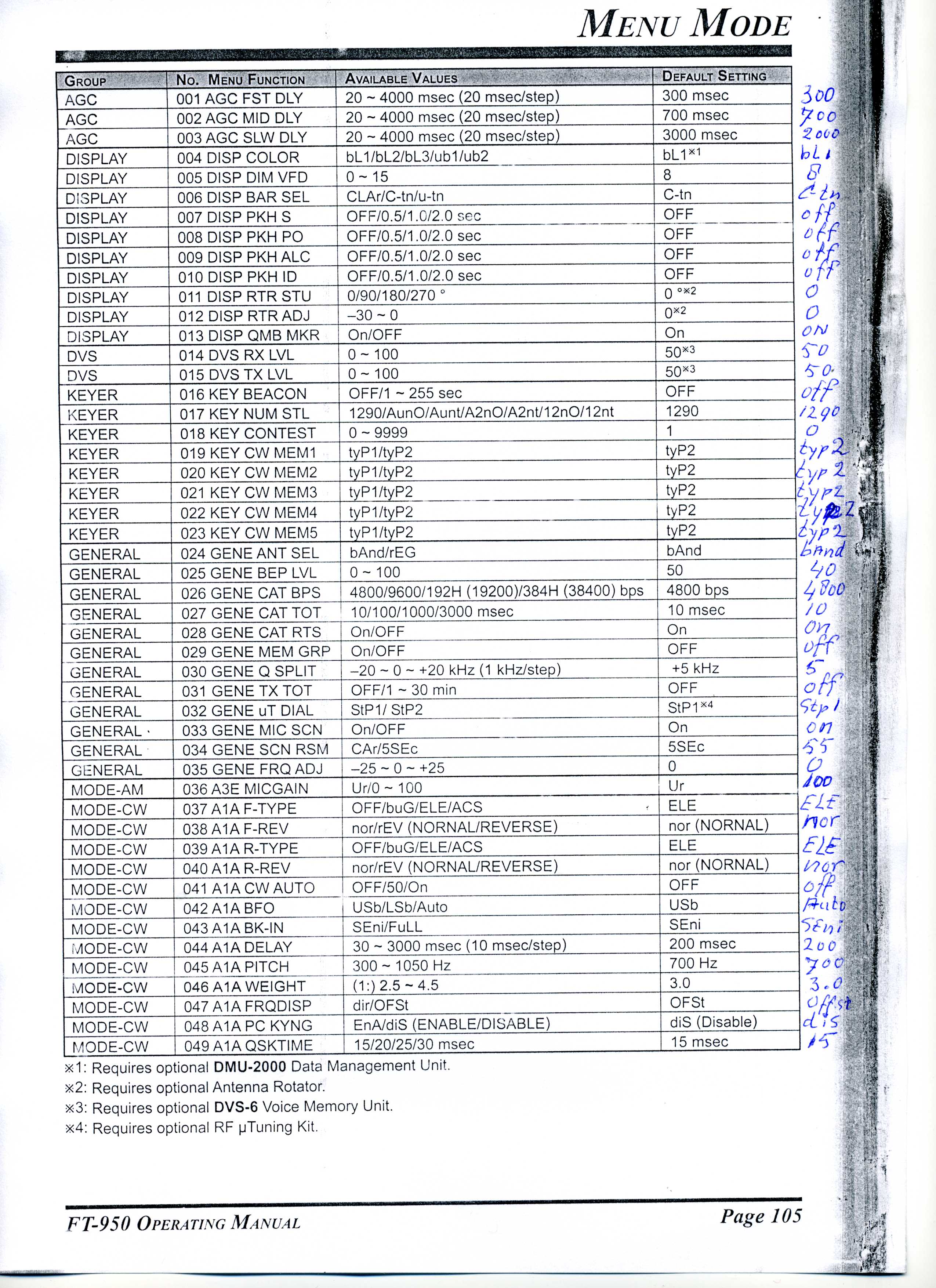 Als ik het goed begrijp ga ik jou instellingen straks toepassen in het menu van mijn a.s Yeasu ft 950